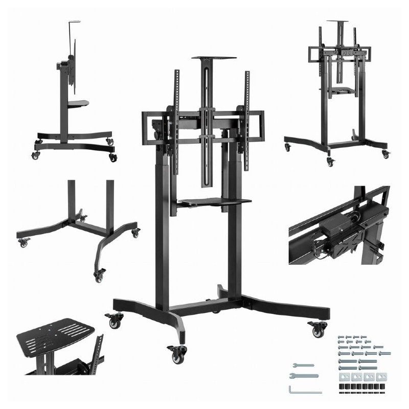 Suporte de Pé Gembird TVS-100T-01 para TV com rodas e Prateleira Motorizado ajustavel em Altura até 100″