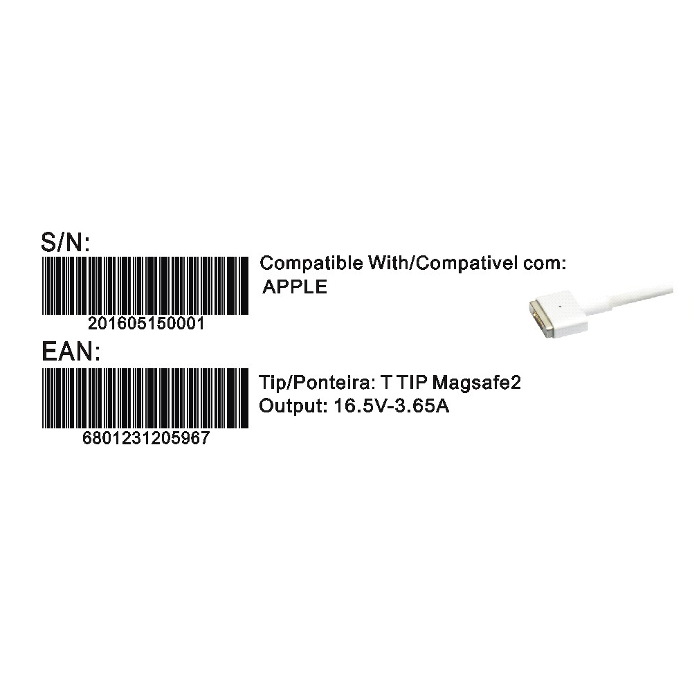 Transformador Compativel 2Hix Apple 16.5V 3.65A Magsafe 2 Tip
