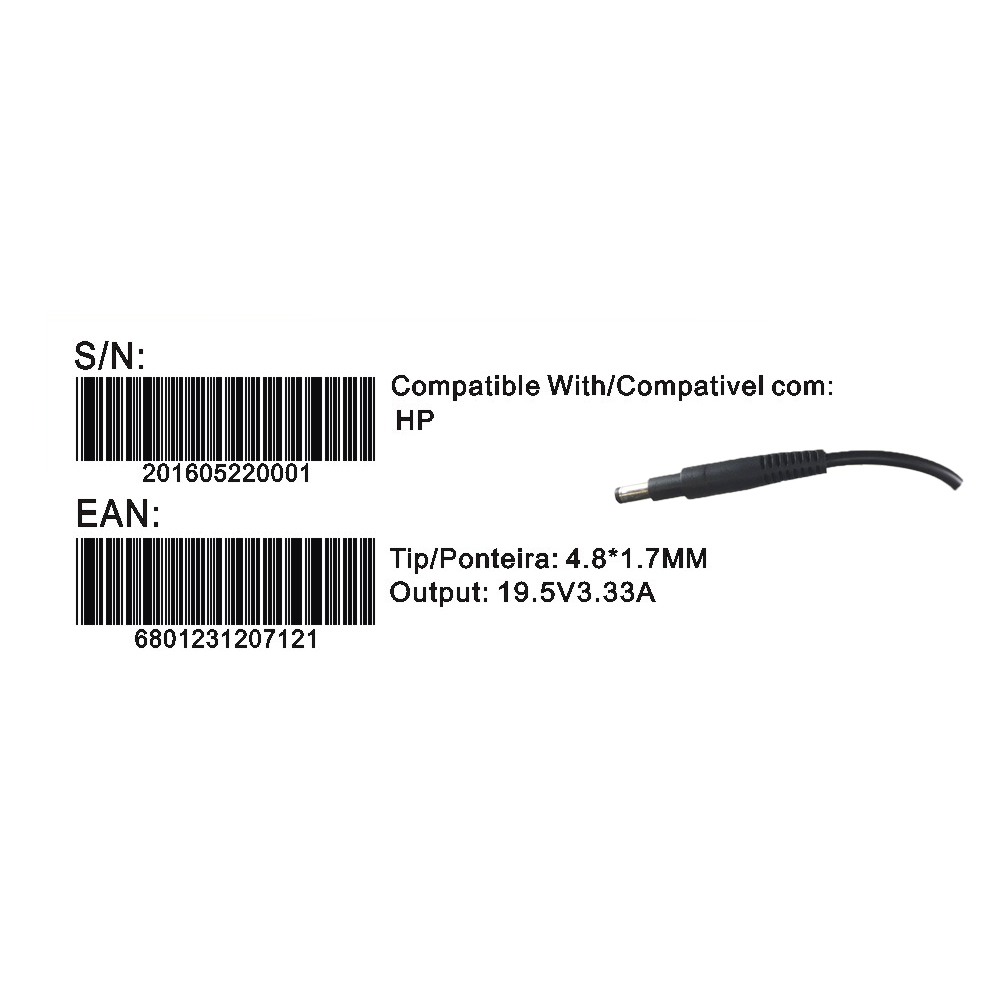 Transformador Compativel 2Hix Hp 19.5V 3.33A Tip 4.8*1.7