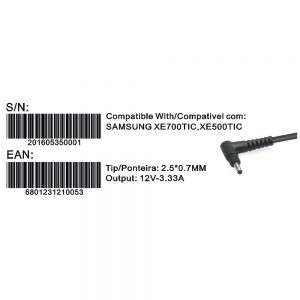 Transformador Compativel 2Hix Samsung 12V 3.33A Tip 2.5*0.7